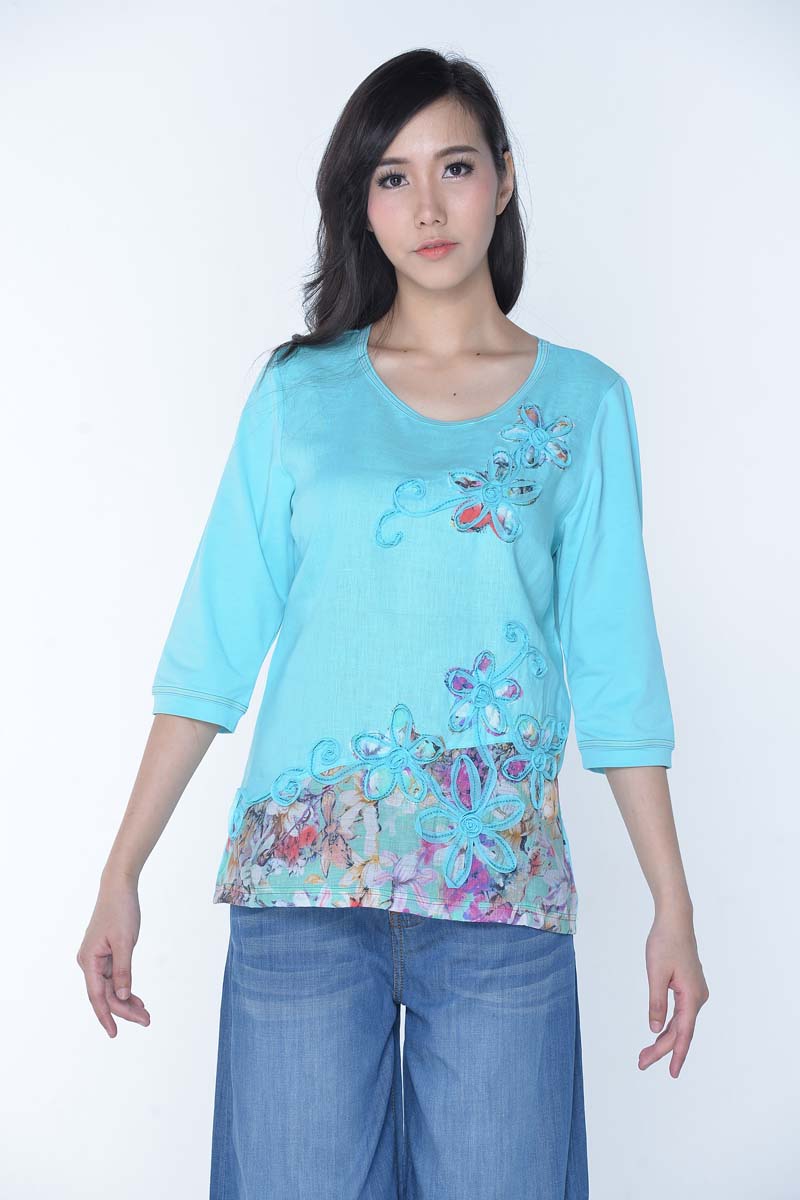 เสื้อลินินหลังผ้ายืด ลายดอกไม้ ( NO.40263)