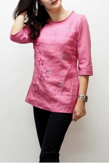 เสื้อลินินหลังผ้ายืด พิมพ์ลาย (NO.40346)