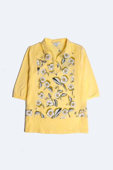 เสื้อลินินหลังต่อผ้ายืดพิมพ์ลาย (NO.40527)